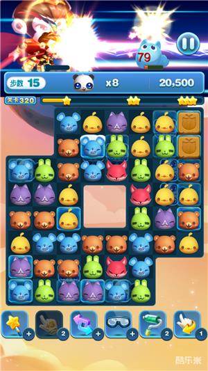 当木块障碍被清理之后,消除就会变得比较明朗了,特效的生成也渐渐的多了起来,这对于熊猫的收集有很大的好处,因为特效可以消除的棋子非常多,而有些位于不便位置的棋子,也可以通过特效来对其进行消除。特效不仅可以帮助玩家快速消除冰块,还可以让分数增加的更为迅速,想要高分通关,特效不得不好好的利用。