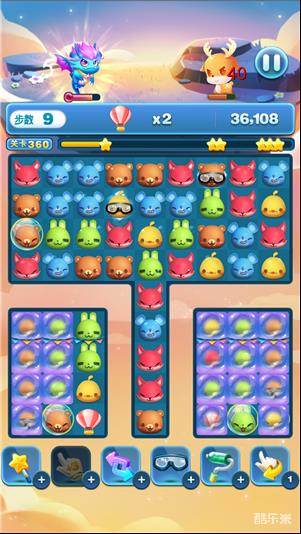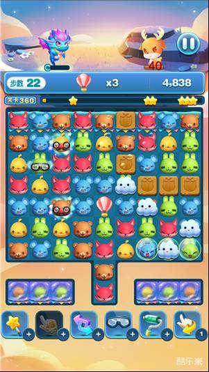 在我们成功收集第一个热气球以后,就可以把精力放在左右两个下角,这里还是有一定难度的,首先就是要把果冻解决,这下面两个部分有自己单独的彩旗线,也就是我们只要消除两个棋子就可以了。下面暂时还不能滑动棋子,所以我们还得在上面继续努力,上半部分地图宽敞可以很轻易制作出道具,虽然有果冻但还是不难看出热气球所在位置,在果冻里还隐藏着特殊道具,这些我们都得利用到才能离成功更近。大概十几步的样子,我们已经把部分果冻消除了,第二个热气球已经出现,如图我们利用已经制作好的射线,要找对位置,利用垂直效应消除热气球上方多余的棋子不是难事。出站四星级宠物打倒本关怪物不在话下,有道具在,任务分也是能轻轻松松完成。
