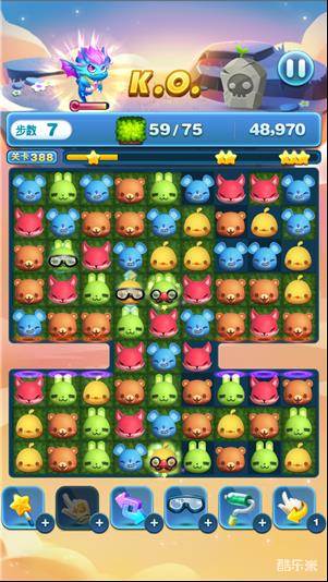 我们在前面已经铺好大半的草坪了,剩下的任务已经很轻松了,当前还有十几步,如图我们还有两个道具在,有幽灵在可以帮助我们更快的完成任务,此关射线离幽灵距离较远就不建议配合使用了,大概十步左右的样子,我们铺好了将近六十块,剩下十几块再利用如图所在道具,其中射线和小丑结合可以产生大范围的爆炸威力,能够瞬间铺好大半草坪。现在主要就剩右边没铺好,我们把主要精力放在这边,左边就不要管了,还有七步完成任务不成问题。出站四星级宠物打倒本关怪物不在话下,任务分不足三万更是没有问题。