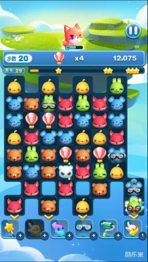 我们开始时可以优先考虑先消除棋子使三个热气球全部都出现,然后再使他们全部都落到地图下方,然后再触发右下角的两个特殊棋子,就可以直接收集齐4个热气球。我们同样需要多多观察和注意,多寻找机会制作目镜射线、旋风小丑和暴走幽灵等特殊棋子,使自己能够快速的清除棋子,达到拿高分,清除快,节省步骤的目的。