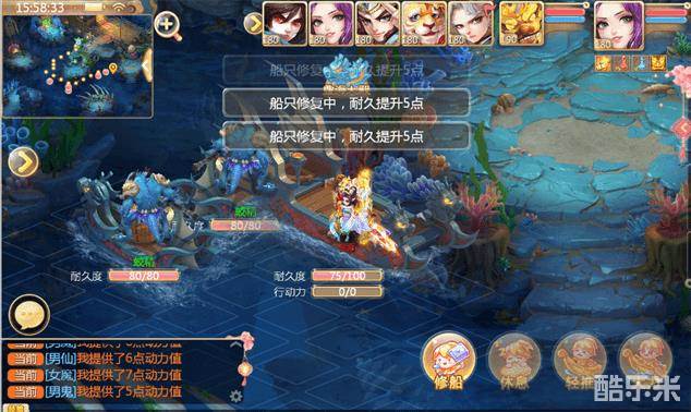 玩家船只被敌方击毁时,需要队伍进行修理后才可前进: