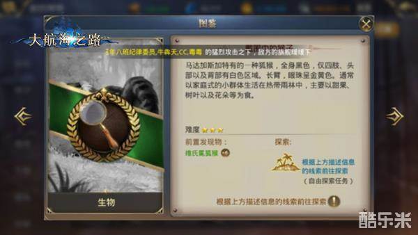 卡利卡特读生物书(5条线索),前置发现物“维氏冕狐猴”。
