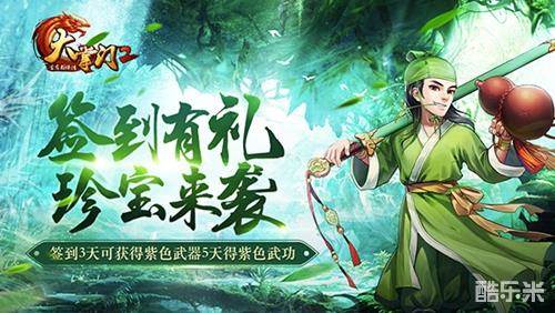 玩家每日登录游戏,即可领取丰厚奖励。累计签到3天可获得紫色武器,5天获得紫色武功,超多福利,只需签到便能领取!
