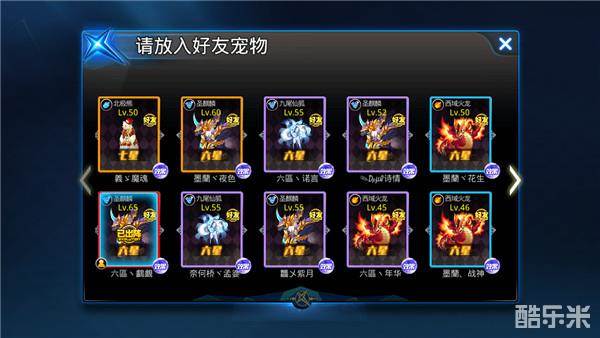 至于好友系列就是好友携带的宠物。关于这点推荐大家多加几个好友,如果好友的战力很高,那么你就可以蹭好友的宠物给你加战力,不过加的战力不会太高,最主要的还是宠物技能。比如你的好友佩戴了女皇,那么你的身边会出现蓝色光球,靠近你的身体会对对方造成伤害,这在普通刷图中也是很重要的。