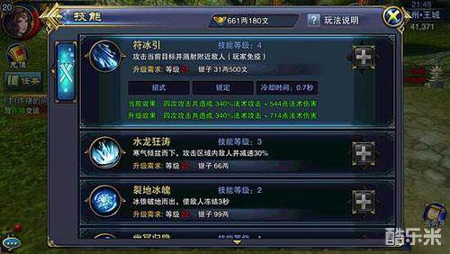水龙狂涛:该技能的效果为寒气倾盆而下,攻击区域内敌人并减速30%,共2次伤害;冷却时间12S。