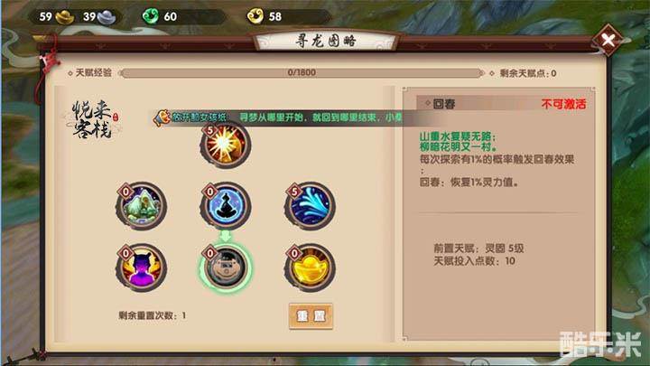 既然这么多玩法都需要消耗灵力值,那么如何才能更多的节省灵力值,让自己更多的进行世界玩法呢?这时就轮到天赋技能出场了。在天赋技能“寻龙图略”和“寻龙秘要”中,均存在着有助于探索的技能。比如技能“灵固”就可以减少大量探索消耗的灵力,而技能“回春”则可以在探索中几率回复灵力。“灵心”会让灵力的回复时间减少,“灵意”则是增加灵力的上限。“灵韵”的作用是战斗力转化灵力的比例提升,“灵转”则会让多余的灵力变为经验值。在这么多技能的帮助下,我想灵力值一定会多到用不完的吧。