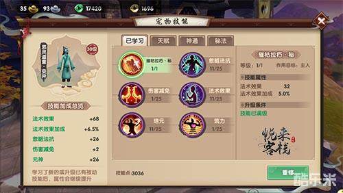 品阶还在很大程度上影响着宠物学习技能的数量和质量,绿色的凡品侍宠只能在第一个技能随机池中随机获取两种技能,可获取的技能分别是筑力(力量)、培元(元神)、锻筋(筋骨)、炼体(体魄)、忽略物抗、忽略法抗、防御提升和法抗提升。;蓝色的中品则可以在前两个技能池中随机获取三个技能,第二个技能池中新增加了生命提升和伤害减免的效果。而紫色的上品仙宠则可以在前三个技能池中学习五个随机技能,技能池三也新增加了物理伤害和法术效果两个非常优秀的技能。而极品宠物则可以从所有的四个技能池中抽取随机六个技能,它更是多出了会心几率、会心伤害、抵抗会心几率与抵抗会心伤害这四个技能。也是非常实用的四个技能。品级除了有技能上的压制以外,还有属性上的压制,低品级的技能要比高品级的技能属性低上一些,所以追求更好的仙宠,也是我们修仙道路上不可或缺的一环。不过宠物学习的技能完全随机,想要让宠物学习更加适合自己的技能,就需要消耗一个归元葫芦来对技能进行重选,归元时也可以选择不要物理攻击技能或者法术攻击技能,也完全是为了职业方便着想。