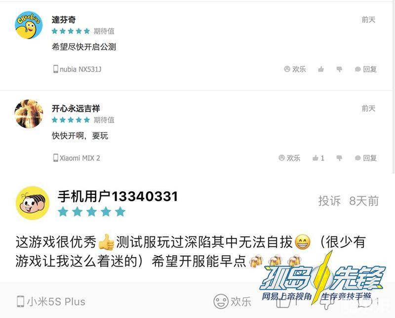 在测试结束后,玩家们还积极出言献策,给《孤岛先锋》提出了独到的意见和建议。比如肯定了武器道具的多样丰富性,且操作简单易上手,但也反映希望道具武器平衡有所加强。还有不少男玩家表示喜欢这种清新明亮的画风,喜欢长腿的御姐和Q萌的萝莉角色等等。还有很多特别的建议,都被开发组认认真真记录下来了。