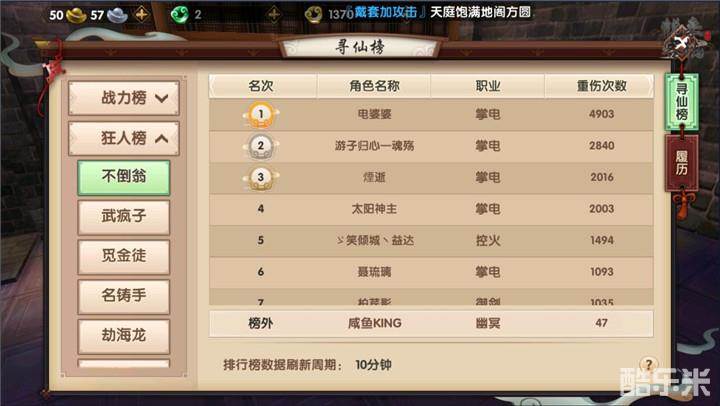 不倒翁:记录仙友们重伤死亡次数,可以说排在榜首的仙友有点惨了。