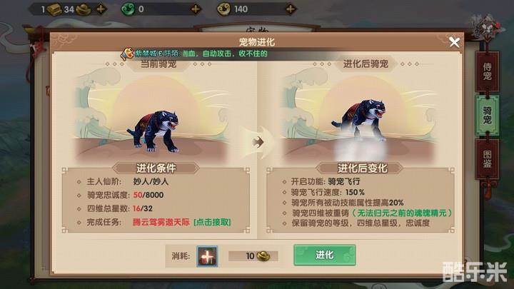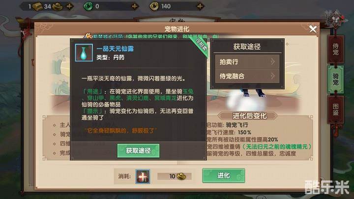 好了,以上就是有关侍宠融合奇遇的解读了,品级越高的天元仙露自然越好,希望各位仙友根据自己所拥有的骑宠谨慎选择对话选项,也要注意符合自己骑宠进化的需求哦。