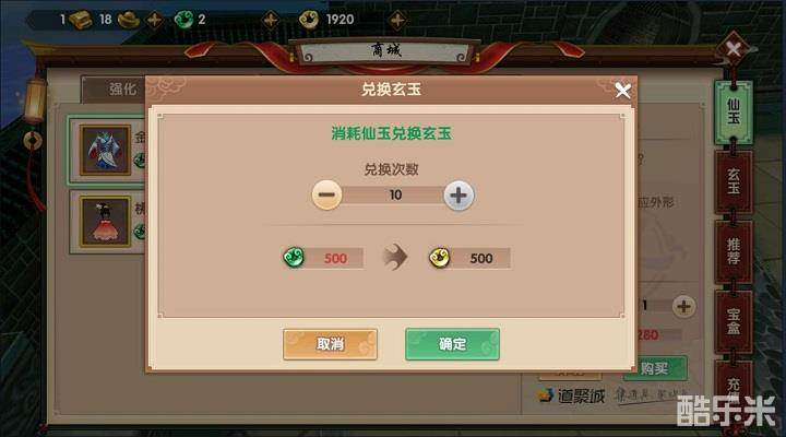 我们点击玄玉后面的加号则可以看到一个兑换界面,在兑换界面中我们可以用等量的仙玉直接兑换成为玄玉,兑换比例为1:1。想要获得大量玄玉则可以优先选择这种方式。