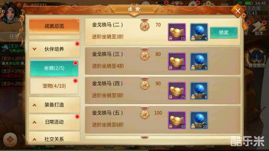 ※成就-伙伴培养中的坐骑可以领取到坐骑进阶丹