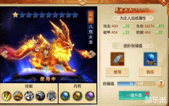 当我们有足够的坐骑进阶丹就可以通过点击一键升星来进阶坐骑了!