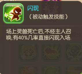 闪现:场上灵兽死亡后,不经主人召唤,有40%几率直接闪现入场。