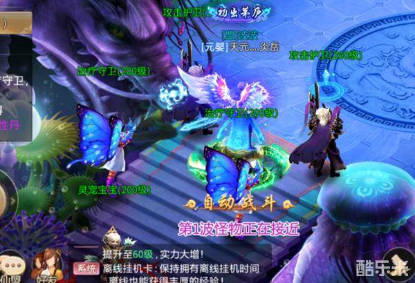 进入副本,人物出现在地图左下角,我们的目的就是守护住灵宠宝宝,可以充分利用攻击守卫(协助打怪)以及治疗守卫(加血)来提高我们打怪的效率。
