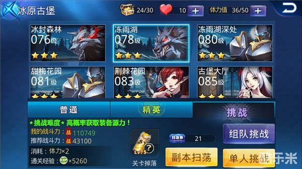 冻雨湖是78级才能进入的关卡,掉落的依旧是75级装备源力,从这里开始我们就直接忽略掉推荐战斗力吧,因为完全没有用,即使是11W的战力,在这里依旧有死掉的可能,所以大家可想而知,这里的推荐战斗力有多大的水分吧!