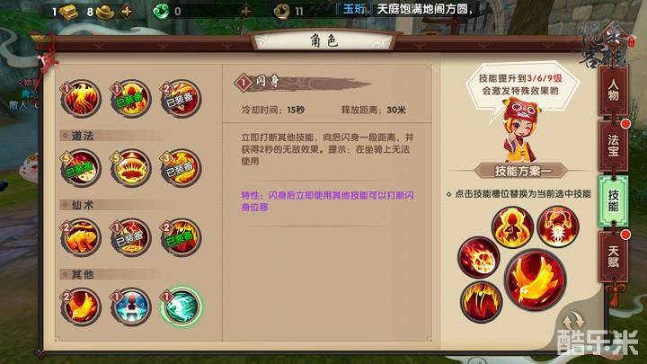 无论在PVP还是PVE中气爆与闪身的作用都是极为强大的。气爆技能的伤害减免50%,增加吸收伤害护盾特性对于战斗中挽回劣势,拖延技能CD非常有用。而闪身的2秒无敌,可以说是游戏中的神技,很多仙友都是依靠这2秒无敌效果在对战中免疫对手控制技能,取得先手,更快带走对手。