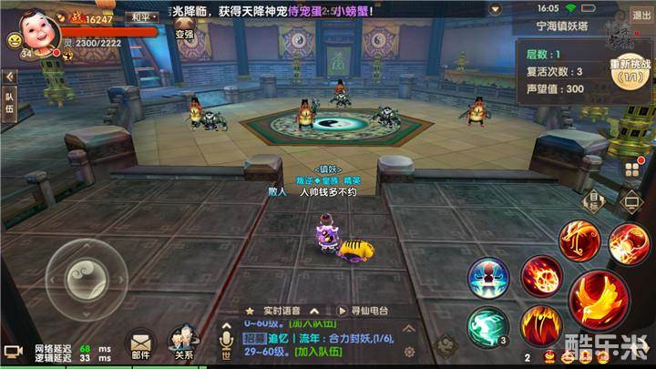 镇妖塔可以组队进入也可以单人进入,如果小伙伴不是对自己的实力十分自信建议小伙伴组队进入。在阵容选择时可以有下面几种搭配:1医生+1输出+1肉盾,1医生+1输出+控制,1医生+2输出总之小仙在这里提醒小伙伴们作为新手打镇妖塔时一定要组上医生再去,因为在镇妖塔里面是没有恢复气血的药剂的只能靠技能加血,带上医生使生存能力更加有保障。