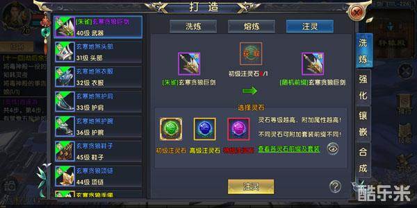 这是小资玩家一定要尝试的地方,装备注灵可改变装备的前缀,不同灵石可以随机出不同的装备前缀。同时穿戴多件相同前缀的装备,可以激活对应套装效果,并且多个套装效果可以并存。这就很厉害了,一套高级或特级注灵的套装给角色带来加成十分强大,尤其是赋予技能特殊效果,有一定资本的玩家可以尝试尝试。