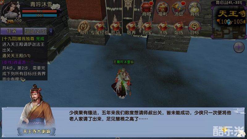 找到大喇嘛后击败媚舞“柳轻眉”。击败媚舞之后,再去找大喇嘛,这个时候就可以进入天王殿,请萨迦法王出关救助唐沐雨。