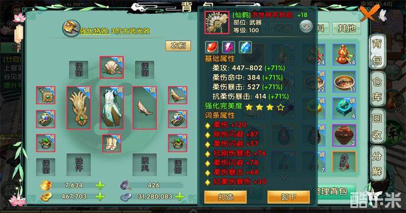 既然极品装备弄到手了,那么接下来就是对装备进行打造强化了。每件装备的最大强化等级为15级,但是每级又有强化加成,系统会根据强化完美度赋予装备不同的星级。在这里建议玩家把每一级强化加成值都提升到最大,这样属性才不会差。药王在后期实战中给大家推荐的技能组合是锦扇精通+药蛊+旋风+药阵+治愈这五个技能,并选择战斗姿态为治疗姿态,既保持了自身的恢复力又有了强大的AOE伤害。