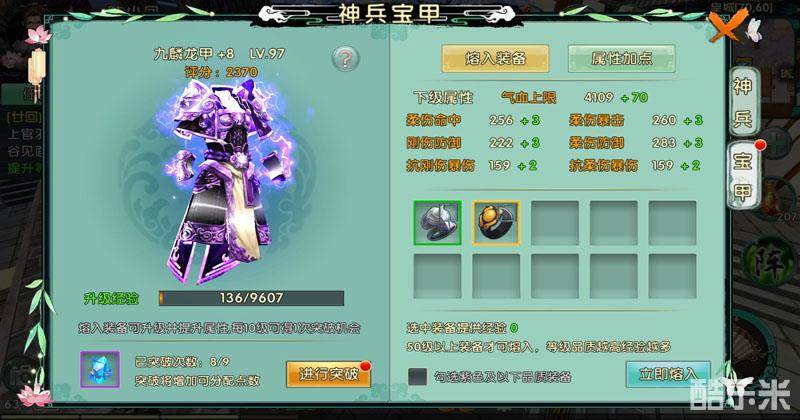 作为最近才更新的新系统,主要作用也是帮助玩家提升属性进而增加战力。神兵宝甲分为两个部分,两者为玩家所提供的属性收益也各不相同 。神兵宝甲每进行一次突破都会获得四点供玩家分配的属性点,玩家可自由分配点数进行相应属性的提升。别小看这些属性点,往往能够充分弥补自身属性的弱点。或者有些玩家喜欢走极端路线的,这些属性点也能助你一臂之力。