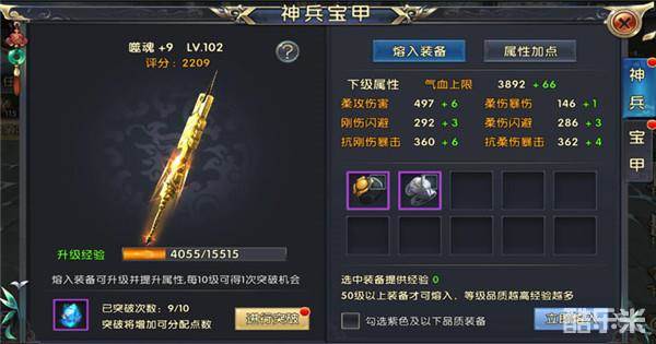 神兵宝甲系统让玩家除了在技能武艺上不断进阶,也能通过神兵宝甲系统增进个人修为与属性,从而提升整体实力。神兵与宝甲分别是两套单独存在的特殊装备成长系统,可为角色提供不同属性上的加成。比如:神兵对应提升气血、刚伤、柔伤、暴击等;宝甲可改变刚伤、柔伤命中、刚伤暴击等属性。玩家可通过熔入不同的装备提升神兵宝甲的等级,当神兵宝甲每到10级可以进行一次突破,突破后可获得额外属性点,增加自身额外属性。