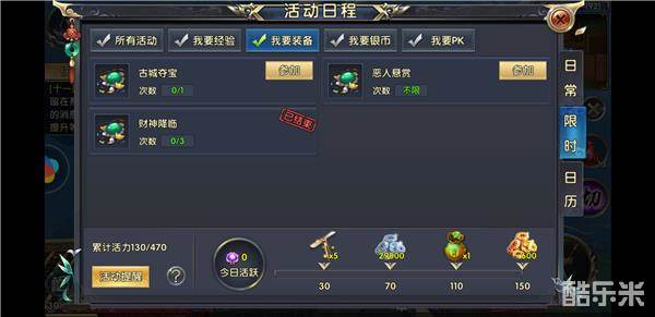 很多玩家前期都是以升级为主,身上的装备都是通过任务得到的。虽然任务给的装备不算差,但还称不上是极品。装备的品质是提升自身属性的主要来源之一,极品装备对战力的提升是显而易见的。那么哪些途径可以获得极品装备呢?首先是古城夺宝,击杀精英、首领怪可掉落大量宝物。不说橙装,每次必得珍品装备还是很可观的。恶人悬赏活动,这是一个世界BOSS的玩法,玩家对恶人造成一定伤害后就能得到奖励,奖励中就包括不少珍品装备。