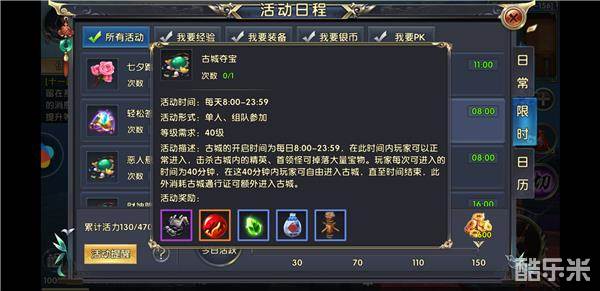 古城夺宝这个活动是强大自己最好的升级方式之一,你越强大获得的经验就越高。每天八点开启,每次可以在副本中待40分钟,建议玩家一定要在副本中待够时间。一定要组成五人一队,这样保证每波怪的旁边都是自己人,等精英怪以及首领怪出来之后喊队友一块打,确保每波怪的仇恨都是我方的,首先就需要眼快手快,抢怪快。