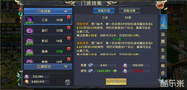 高等级的技能是你能够有效的输出途径,所以在技能升级上千万不要吝啬你的银币和专属经验,至少得保持在游戏平均水平以上,这样你才能压制住对手。在平时完成日常活动中,多注意奖励技能经验的活动,防止在升级技能是出现经验不够的情况。另外在技能搭配上优先给突进技能和控制技能留下位置,剩下的可以视对方职业而定。一定要带这类技能的原因是如果你是近战近战技能反正被远程放风筝,留一手控制则可以在自身处于劣势时能够从容撤退,做到进攻防御两不误。
