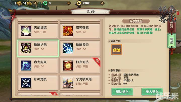 寻仙手游中的很多活动都有经验奖励,特别是秘境拾荒奖励的经验尤其多,所以想要紧跟大部队的升级节奏,每天的各种活动也是都要完成的。
