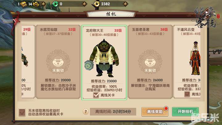 每个仙友在现实中都有很多事情要忙,不可能一天24小时都在游戏中,因此“挂机”就成为了一个非常不错的选择。而且,即使你不进入游戏挂机,在选择好“离线关卡”后,即使不上线,系统同样会记录挂机奖励,不过离线挂机的时间储存上线只有24个小时,因此每天登游戏的时候千万不要忘了领取你的离线挂机收益,最好是选择消耗玄玉的那一类。