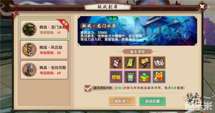42级挑战·龙门水府有几率产出各职业40级高阶武器图纸、智慧仙丹、勾陈玉符、机缘仙丹以及稀有宝石。