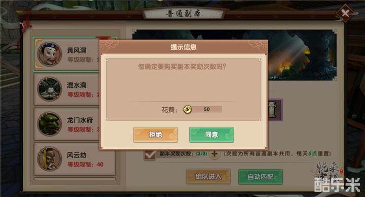 这里请各位仙友注意的是,每天普通副本的奖励次数是3次,而挑战副本的奖励次数2次,只有拥有了奖励次数才能获得道具,请大家一定注意将这个奖励次数用在现今能打的最高级副本上,才是最划算的。并且普通副本是每天可以花费50玄玉多购买一次奖励次数的,这里有需要的仙友可以考虑购买次数。