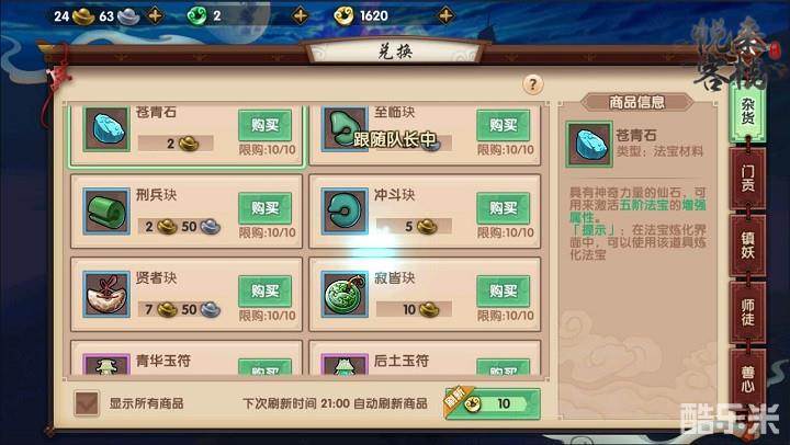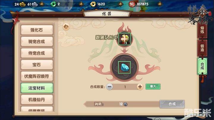 而在虫谷的任务奖励基本已经没什么需求的时候,我们在没到达五十级之前依旧可以继续将奖励次数都用在风云劫上,因为这样我们依然可以获得大量的法宝强化石或是其他道具,不需要的道具可以出售,而法宝强化石则可以在合成系统中通过合成三合一合成更高品质的法宝强化石,当我们等级提升至50级的时候,就可以解锁新的法宝技能,同时法宝升级又会需要新的道具,这个时候,我们就已经准备好了一些可供升级,我们也就可以在短时间内提升一定的战力,也会减轻法宝强化的压力。