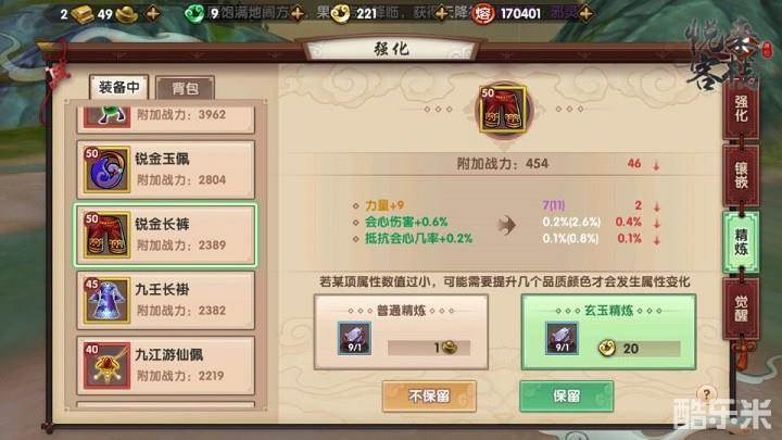 寻仙手游中,装备是提高各位仙友战力的主要途径之一。仙友们穿戴装备后可以通过强化、镶嵌、精炼和觉醒来大幅度累积提升战力。俗话说:“人靠衣服马靠鞍”下面小仙就详细的给各位仙友介绍一下装备精炼的详细玩法。