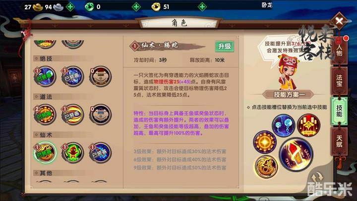 一只火签化为有穿透能力的火焰腾蛇,攻击指定目标 提示:当目标身上具备壬鱼、癸鱼状态时,造成的伤害大幅提升,两者的效果可以叠加,最多可提升100%的伤害,有风雷状态则降低目标攻击力。