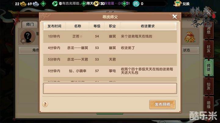 另外我们应该通过加入门派、拜师、传功等途径来提升经验值的获取情况,由于新创建的时候等级较低,所以找师傅以及找人传功非常容易,拜师后可以根据师徒任务来进行各种各样的玩法互动,从而达到获取大量经验值的目的,再加上被传功,也可以获得非常多的经验值。但是加入门派和给别人传功就相对要难一些了,门派可以随机加一些小门派,而给别人传功则可以自己另开小号,自己给自己的小号传功,这样也可以解决没有人传功的问题。