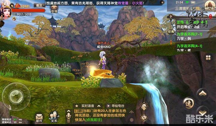 第一个探索任务的点位就在入口附近,这里有一个NPC名为姜子牙,旁边有一个流淌着瀑布的葫芦,而探索任务就在这个位置的正下方,我们需要先从侧面绕到最下面,在这座山的坐下面有一个小岛,而探索任务则藏匿在那个隐藏的小岛上。