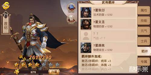 袁绍出身于东汉名门、四世三公“汝南袁氏”,但在三国乱世,含着金汤匙出生的他也不可避免地卷入群雄逐鹿的时代洪流中。官渡之战大败于曹操后元气大伤,很快病逝。《一骑当千2》中,袁绍的羁绊是麾下几员大将,其中,为袁绍提供法术防御加成的张郃后来投降了曹操,成为五子良将之一,而凭借勇武深受袁绍信任的颜良文丑在游戏中分别为袁绍提供物理攻击和物理防御加成。