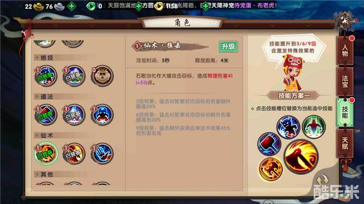 道法技能方面雷霆一击则是用大锤袭击地方,并且击倒,是控制技能。技能等级提升后会增加自身的伤害吸收。