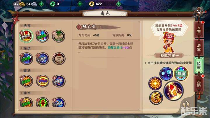 祭起法宝化为9只金签,每隔一段时间金签都将被奇门游侠吸收,恢复一定生命。该技能可以为奇门游侠提供少量的生命回复。