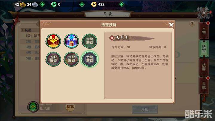 身前祭出法宝,进行占卜,如果自身没有风雷状态,则会抽到红签,祭出一枚红签对目标造成伤害;自身有风雷状态,必然抽到蓝签,祭出一枚蓝签,对目标造成眩晕4秒,但造成伤害大幅降低。提示:当目标身上具备壬鱼、癸鱼状态时,红签造成的伤害大幅提升,两者的效果可以叠加,最多可增加100%的伤害,蓝签无伤害加成效果。该技能既可以造成大量伤害也可以根据选择造成上时间眩晕,非常适合在PVP中使用。