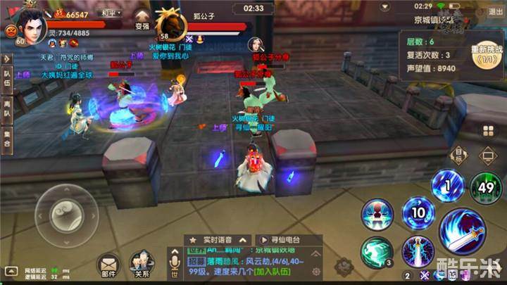 5、镇守6层的是狐公子和其爪牙。这一层的打法就是先下去一人把狐公子引到入口的台子上,防止它来回乱跑。狐公子会使出分身来对各位仙友造成伤害,这里有奶妈在大家不用管直接对狐公子输出就行。