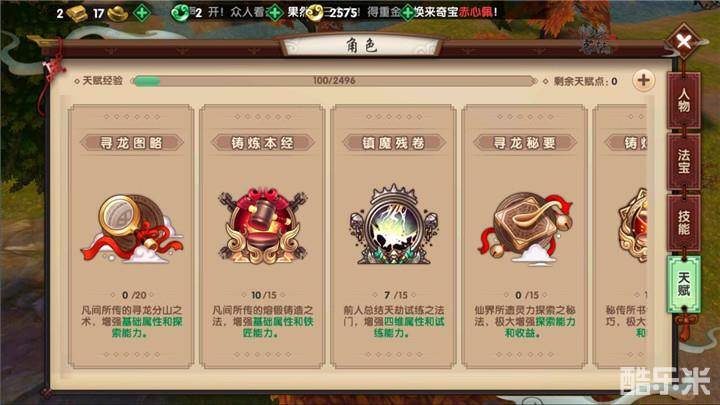 首先我们先来看看我们需要多少天赋技能点,我们的天赋技能中一共有寻龙图略、铸炼本经、镇魔残卷、寻龙秘要、铸炼玄卷、风云劫源、武斗指南、世途玄真一共八个页面,其中除了寻龙图略需要20点学满之外,其他都是15点学满,也就是7X15+20等于125点天赋技能点,而我们如果按65级来计算,26级之后每升一级就会赠与一点天赋技能点,也就是现阶段通过等级提升我们能够获得40点天赋技能,这样一来需要我们刷的天赋技能点就是85点。