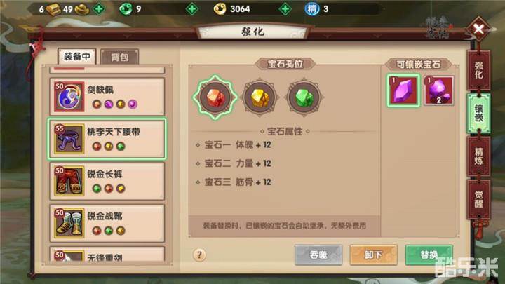 装备更换的时候已经镶嵌好的宝石是可以自动继承的,不需要额外的费用,大家不用担心花费金钱了。