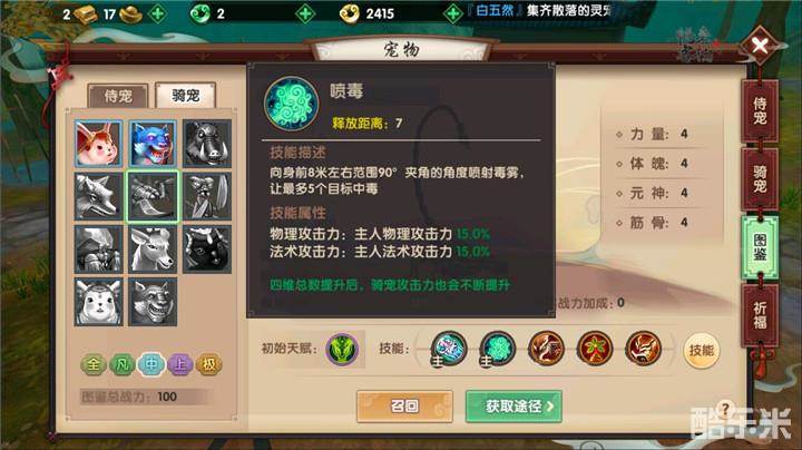 在《寻仙》手游中,有许多外形帅气又实力强劲的宠物,它们虽然分为侍宠和骑宠,但无论哪一种都是我们必不可少的伙伴,侍宠的获取方式大多都是依靠野外直接捕获,或者是在宠物玩法中的祈福抽取获得,大部分优秀的侍宠,都需要通过金龙赐福抽取才可以获得。但骑宠的获取方式就不太一样了,骑宠除了可以从须弥纳宝盒中抽取极品以外,也还会通过不少游戏中的活动玩法以及直接购买获得,而在野外也是有骑宠可以抓的,今天我们就来看一看这些骑宠的获取途径。