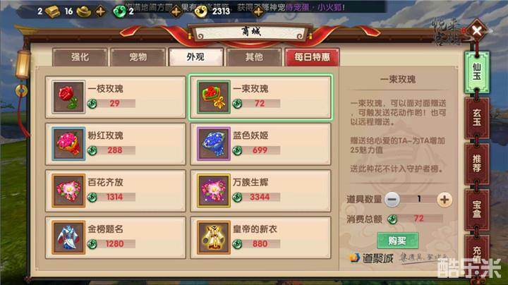 采集到小花会赠送仙友一定的金钱,我们也有几率获得商城道具小鲜花以及一束鲜花,另外还有残缺宝石,以及少阴少阳宝石合成符,更是有激活获得侍宠潜能点作为奖励呢。另外采集大花的话,产出的奖励与小花相同,但是产出的量以及获得奖励的概率都要比采集小花高出许多,我们在每周一周三晚上再次奋战一个小时,可是能得到非常棒的奖励呢,仙友们快来参与吧。