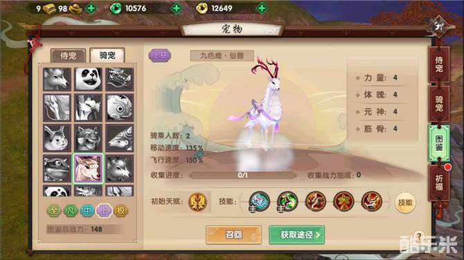 这个骑宠就属九色鹿莫属了,独占商城唯一宠物的宝座,就是它售价只要6880仙玉的骑宠,九色鹿。九色鹿是以技能回血,普攻附带恐惧而闻名的,堪称上品中的PVP神宠,而且由于这是为数不多的神通技能几乎全法术的法术型骑宠,所以深受法师们的爱戴,只依靠一些仙玉就可以稳定获得,对于仙友们来说还是要比概率获得更加稳定一些。