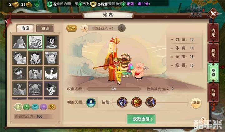 最近宠物界可谓是风波不断,最新宠物祈福极品档位也更换了新宠物,最新防御系极品侍宠【取经四人】以及【取经四人星魄】将于更新后全面登录祈福极品档位,他这次将会在此处限时登录一周,毕竟人家取经的路还很遥远,本次途径仙界,被绝美的风景吸引,当然要驻足休息一番,可不是因为师父被这里的妖怪抓走了哦。